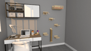 1 prateleira mini inferior (Kit Arranha Aqui): 12 cm x 12 cm x 13 cm
